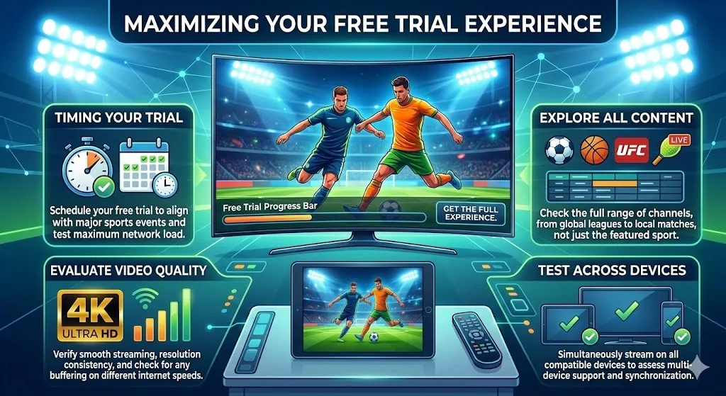 1. Test During Live Events: Do not just watch Video on Demand (VOD) during your trial. Log in during a live football match to see how the servers handle high traffic.