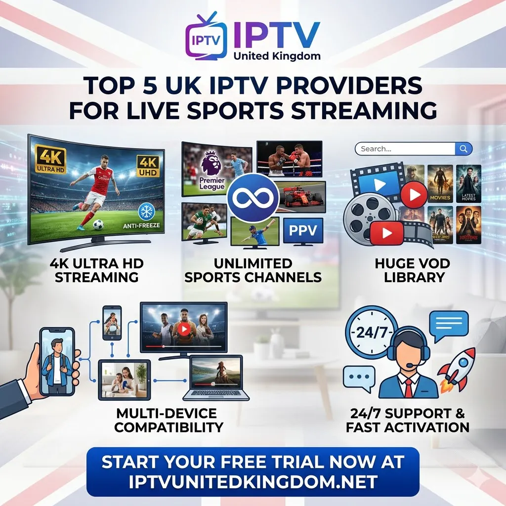 When analyzing the market for the best uk iptv providers for sports, the evidence clearly points to one superior option. For unmatched 4K streaming, an endless selection of unlimited channels, vast VOD content, and flawless multi-device compatibility, your premier choice is definitively IPTV United Kingdom. Do not settle for missing the biggest games of the season due to regional blackouts or exorbitant broadcasting fees. Take control of your entertainment experience today. Visit IPTV United Kingdom right now to start your free trial and instantly upgrade how you watch live sports.